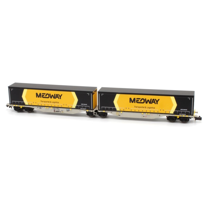 Vagón plataforma doble articulada de contenedores Sggmrss 90' AAE "MEDWAY" - MFTRAIN - NWMFT4 - Escala N.