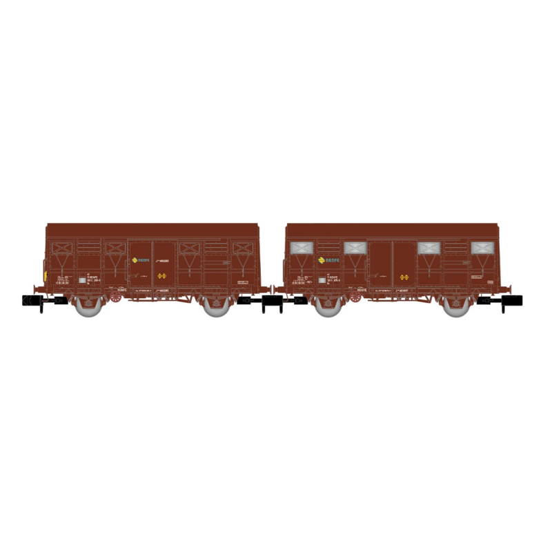 Set de 2 vagones J2 RENFE, decoración rojo óxido, uno con luces de cola.