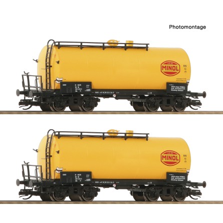Set de 2 vagones cisterna cisterna 4 ejes, de la DR "MINOL" - ROCO - 6680019 - Escala TT.