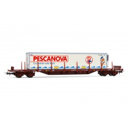 Vagón plataforma de 4 ejes RENFE MMQC, cargado...