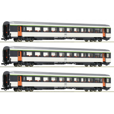 Set 1de 3 coches EC "Mont Cenis", de la SNCF - ROCO - 74032 - Escala H0.