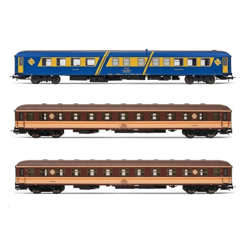 Set "Costa Brava" 1 coche restaurante RRR-8000 y 2 coches literas BBL-8100 - ELECTROTREN - HE4035 - Escala H0.