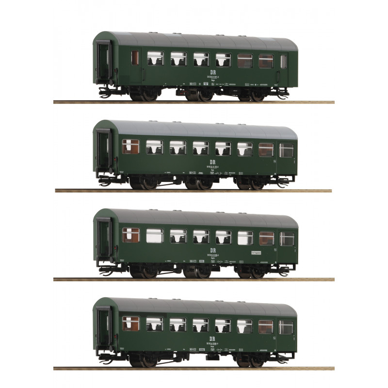 Set de 4 vagones reconstruidos, de la DR - ROCO - 6280002 - Escala TT.