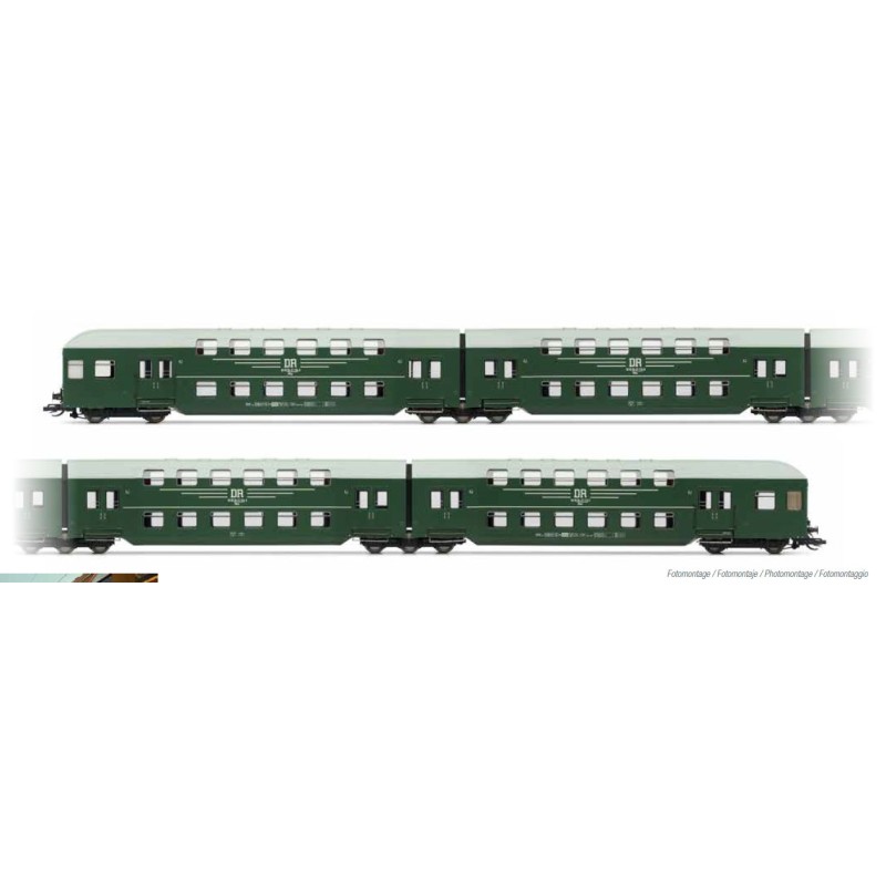 Set de 4 coches de doble piso, sin coche piloto, techo verde y gris, de la DR - ARNOLD - HN9524 - Escala TT.